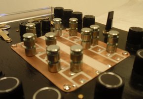 The quadrum family by Arius Blaze, at its root, utilizes an analog circuit with a huge warm sound. These are very analog and warm pieces - occasionally loud and insane, and oftentimes very sweet tonally. Some of the first standalone synth-art works created by Arius were quadrums. After years, he brought the concept back (with the introduction of the "drum scape series"), adding a more well thought out layout, the new custom brass keys and a powerful delay. These synth-art works are limited.