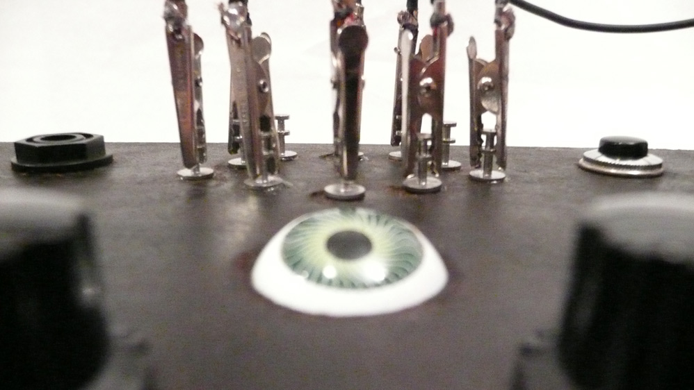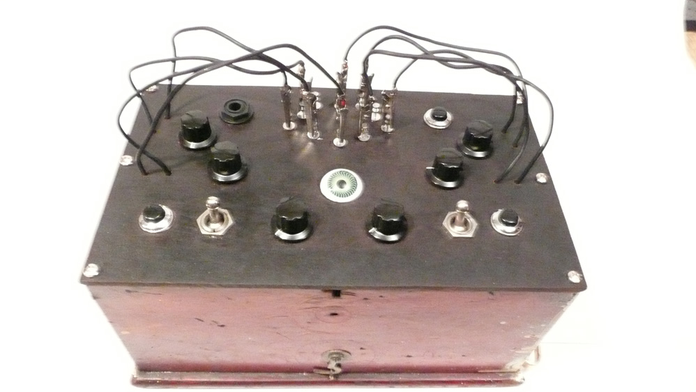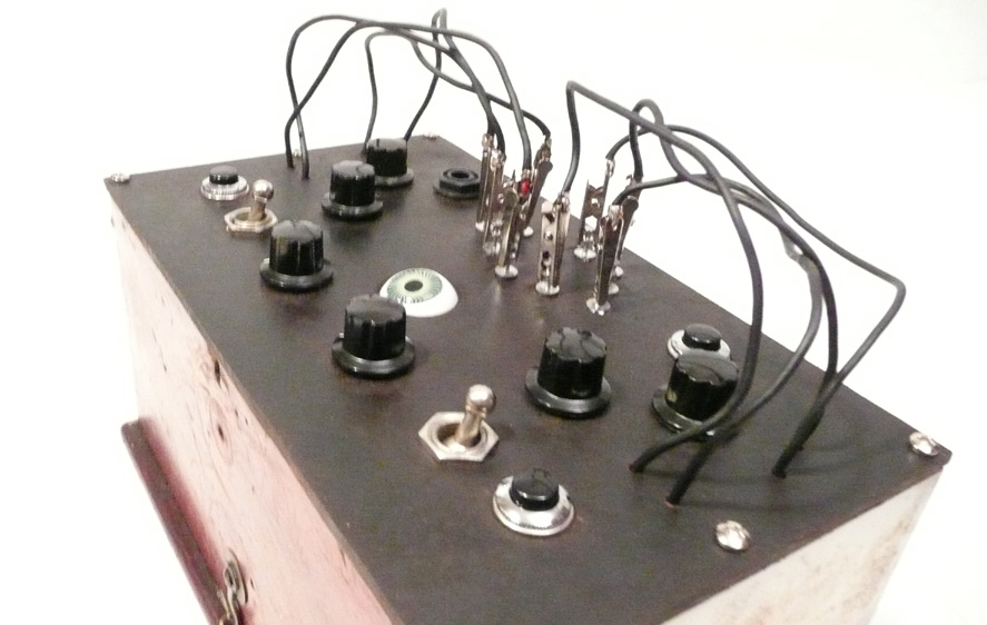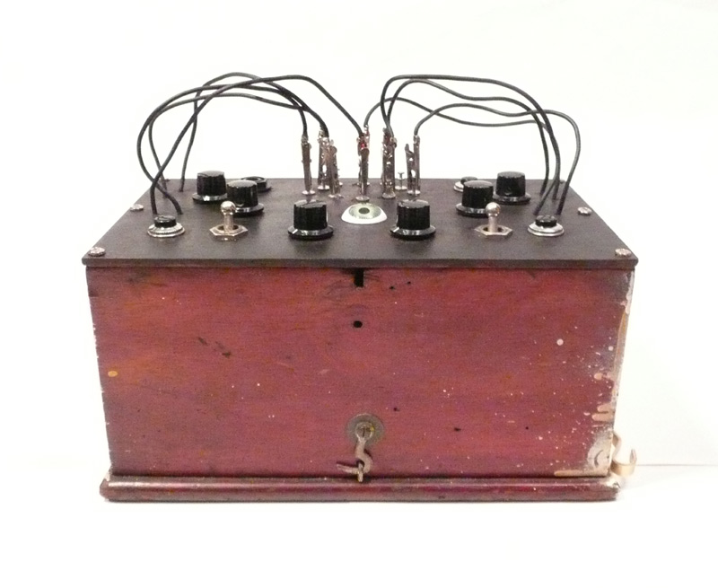 A patchable bug. several of these identical works have been built - all into antique shock therapy housing.