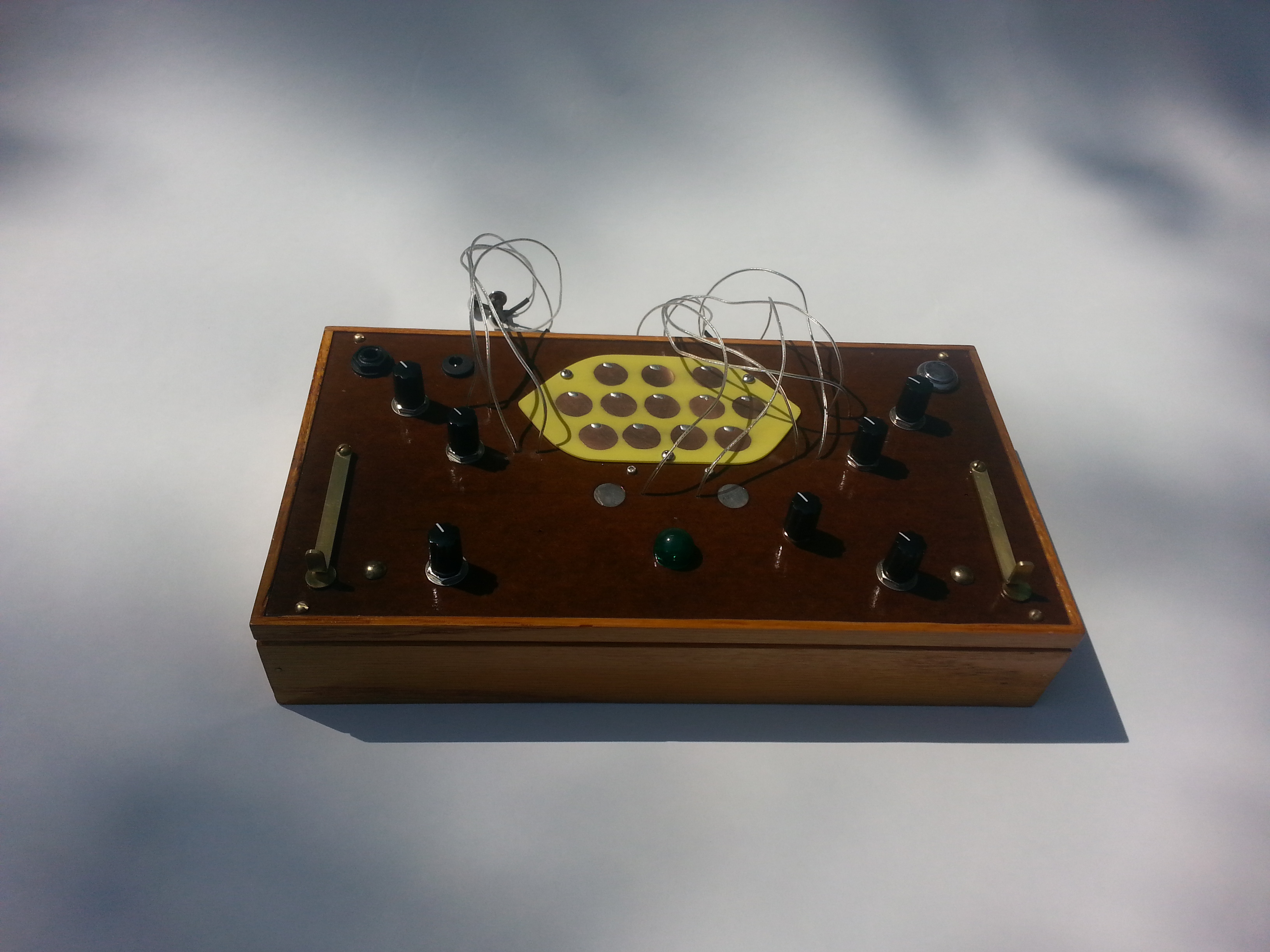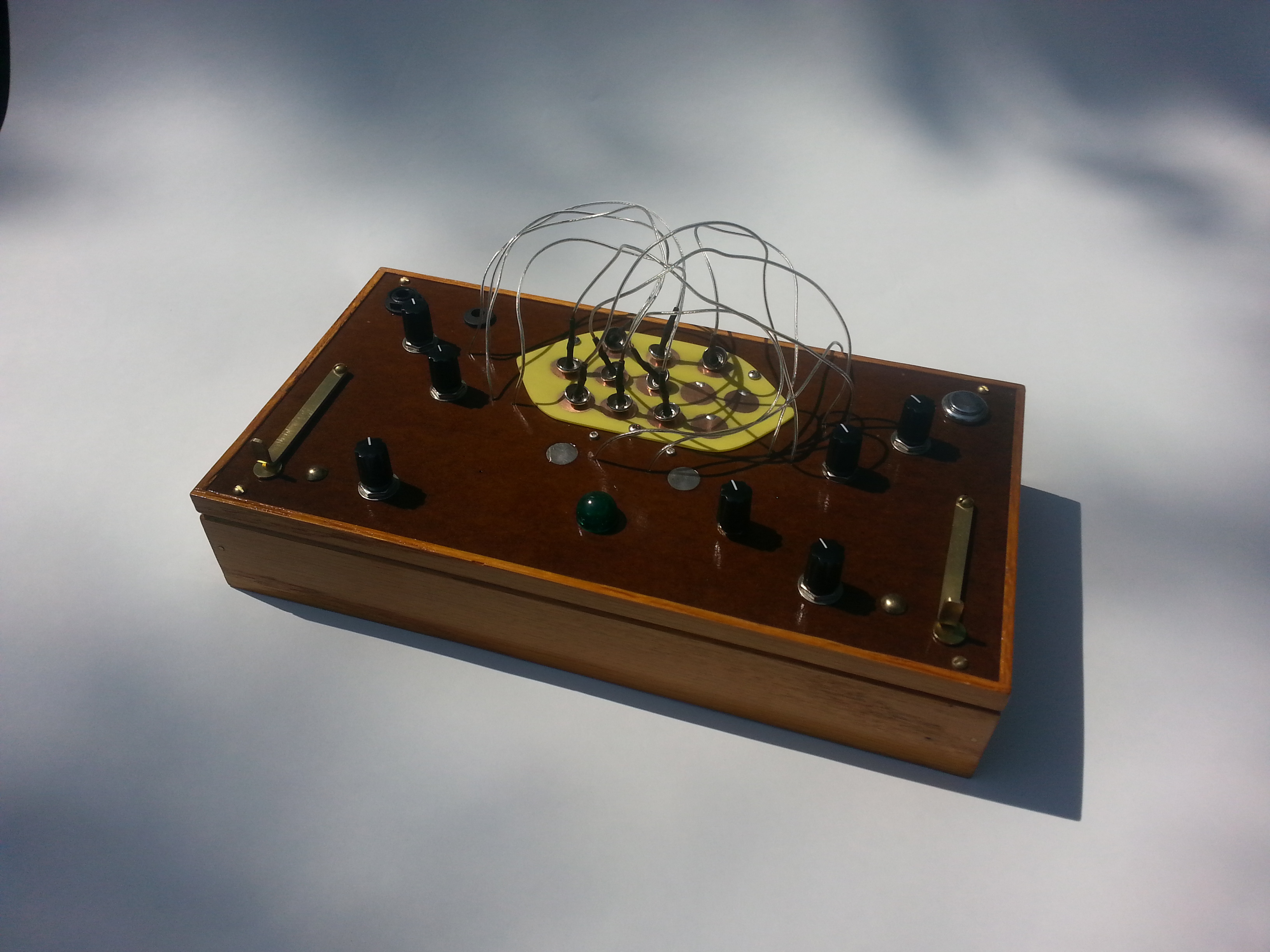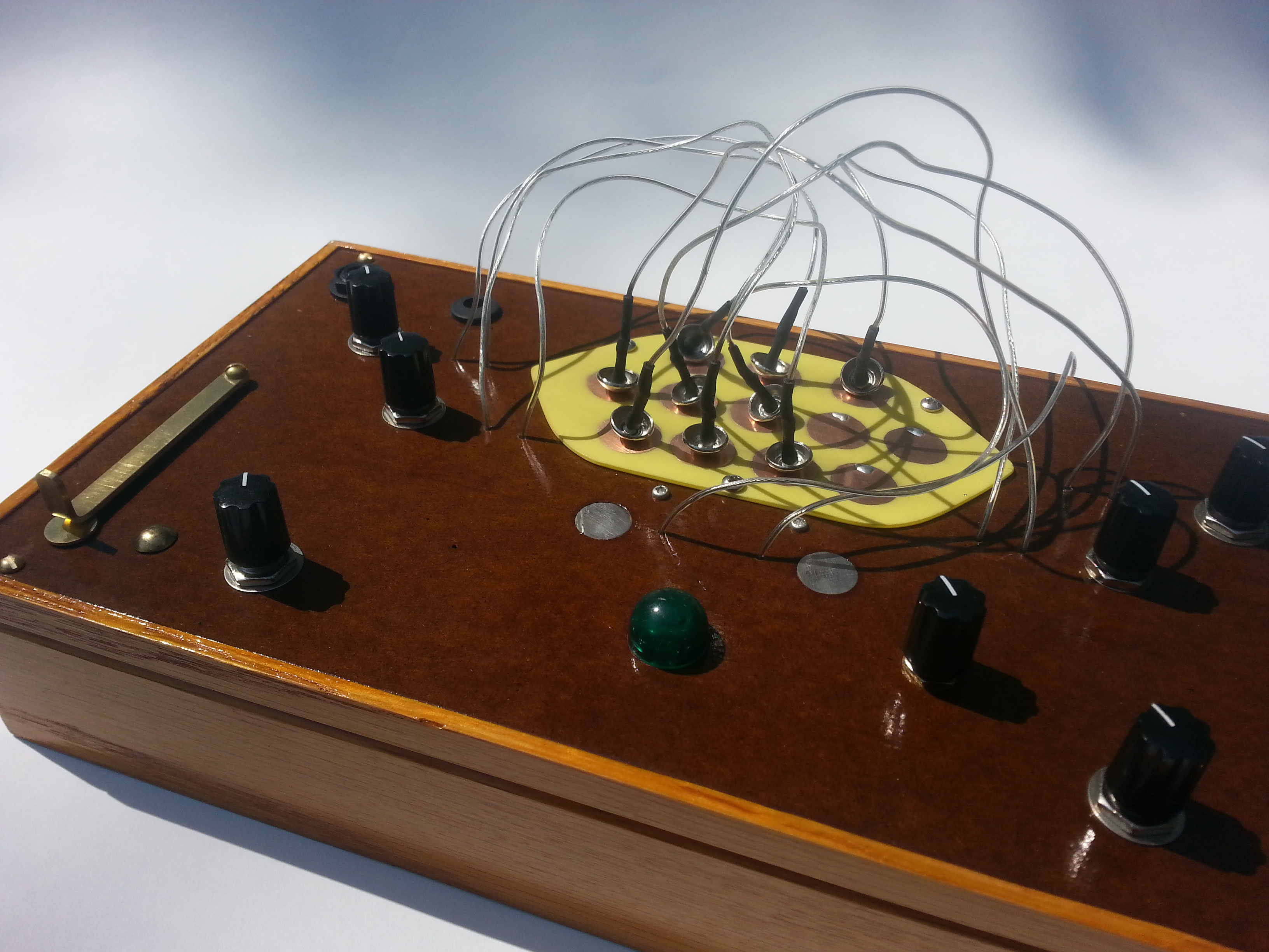 Here is a new Bug work, 4 reconfigurable magneticly patchable knobs let you connect through the hand etched patchbay. The Bug's controls let you create and tune a field of glitch based noise and sonic splatter. This piece Features 4 magnetically patchable kobs that let you tune each connection, 2 strobing light patches for intermittent sound and juggeling, Power starve knob, global tune, Activate and Freeze "button/switches",Reset button,red lamp, and a 1/4 out