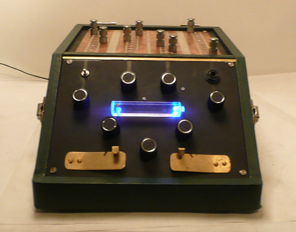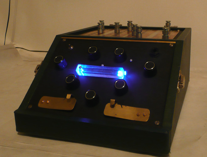 In addition, There's are three more knobs (global control, volume and power kill), power indicator lamp glows blue, custom pushbutton/switch activate and freeze/mode sections, reset, 1/4" output, included AC adapter, basic manual of function and layout.