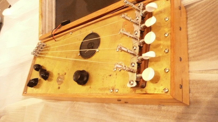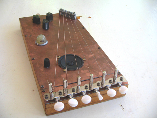 The Feedback Harmonizers are stringer accoustic-electronic works based on excessive feedback. There is a speaker mounted on the sound board under the stretched strings - the speaker helps to vibrate the strings, the strings are picked up, sent into a tight, dub-style delay, sent into a ring modulation, sent through the amp and into the speaker. The sound is very drony and the strings can be tuned and I would consider this a piece to be played with an ebow.