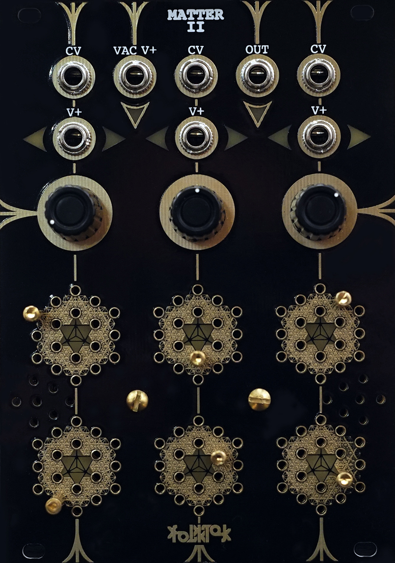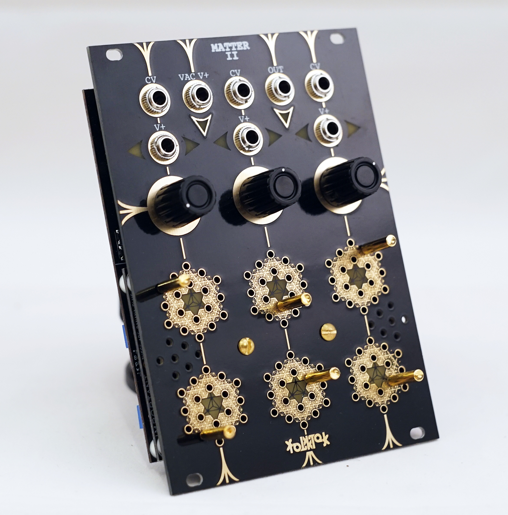 Matter ii may be our most beautiful and fully contemplated module to date. It takes the original analog drum-wave synthesis of the original matter and simplifies patching while also adding possibilities. By nature, it is in a way less experimental than the original matter but there's massive room for experimentation and this version opens possibilities that would be much more difficult if not impossible to accomplish on the original.