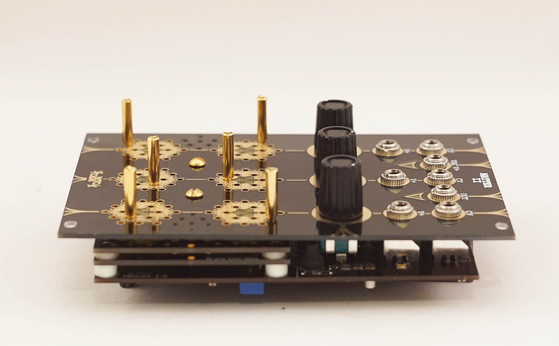 It utilizes a pin matrix - a single point patchbay that allows you to connect points without the use of cables. Included are gold 2mm banana plugs and these are easily replacable. On the front panel there are extra entries (holes) to hold extra, inactive pins. The pin matrix allows access to the sound generation to create anything from beats to drone to noise and matter ii is fully capable of processing external audio with fuzz, filtering and heavy distortion. With the addition of a vactrol, these drones, noise or even processed audio can be cut or modulated with any gate, trigger or cv source.