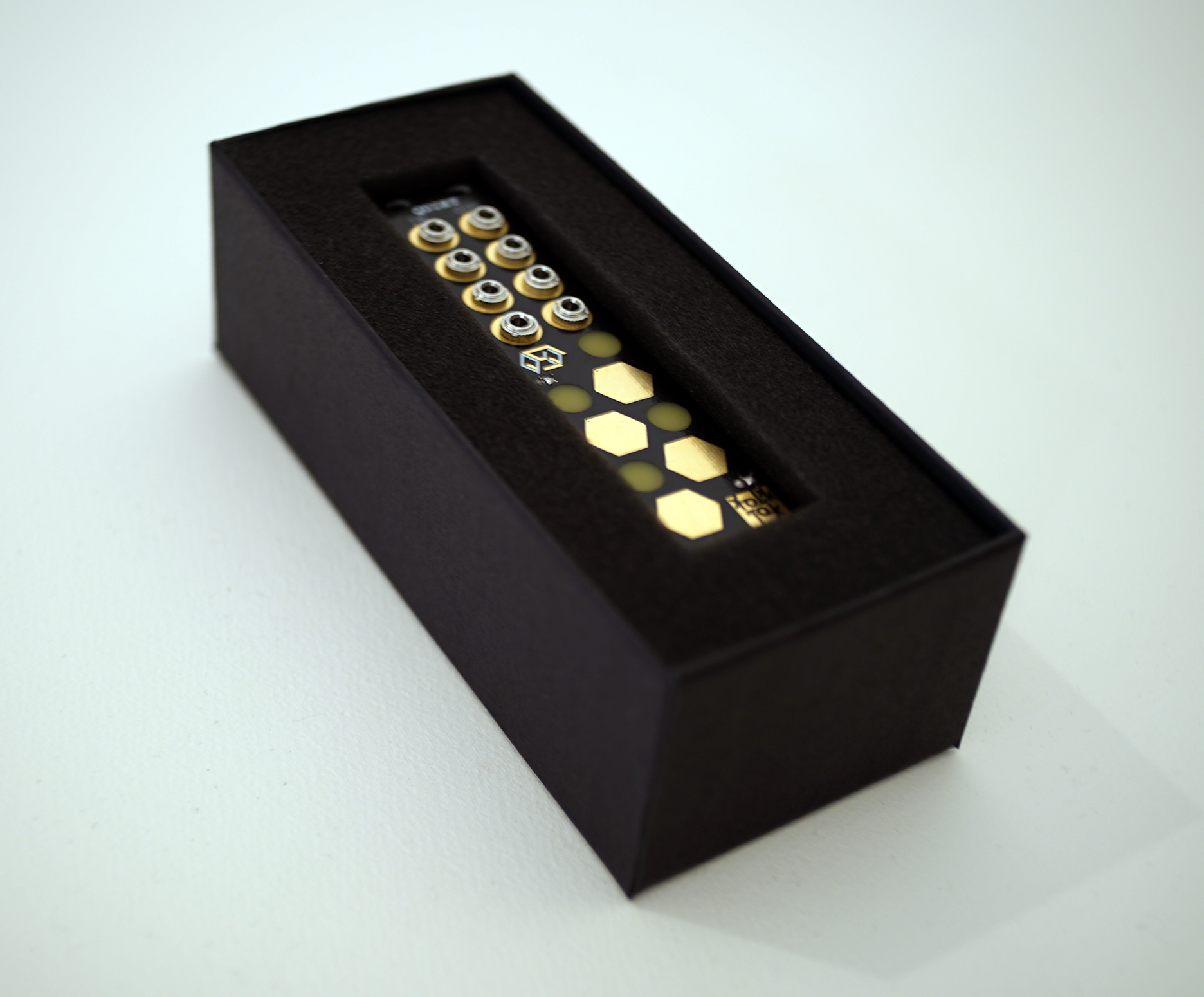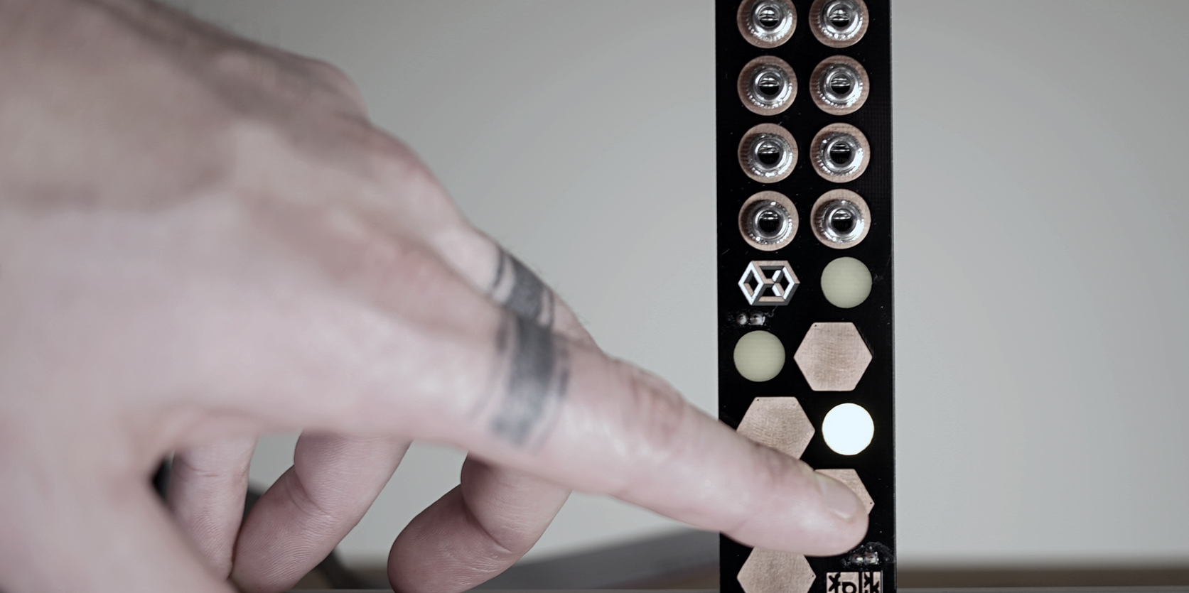 A simple but effective mute for audio or cv signals with a latching on/off. Each of the four parts has 3.5mm input and output jack with corresponding touch button and light. Allows for a more hands on experience when patching by allowing the player to turn a passing signal on and off. This is an extremely important addition to any eurorack system for anyone who wants greater control over the mix and wants to be able to simply add or subtract cv or audio signals on the fly.