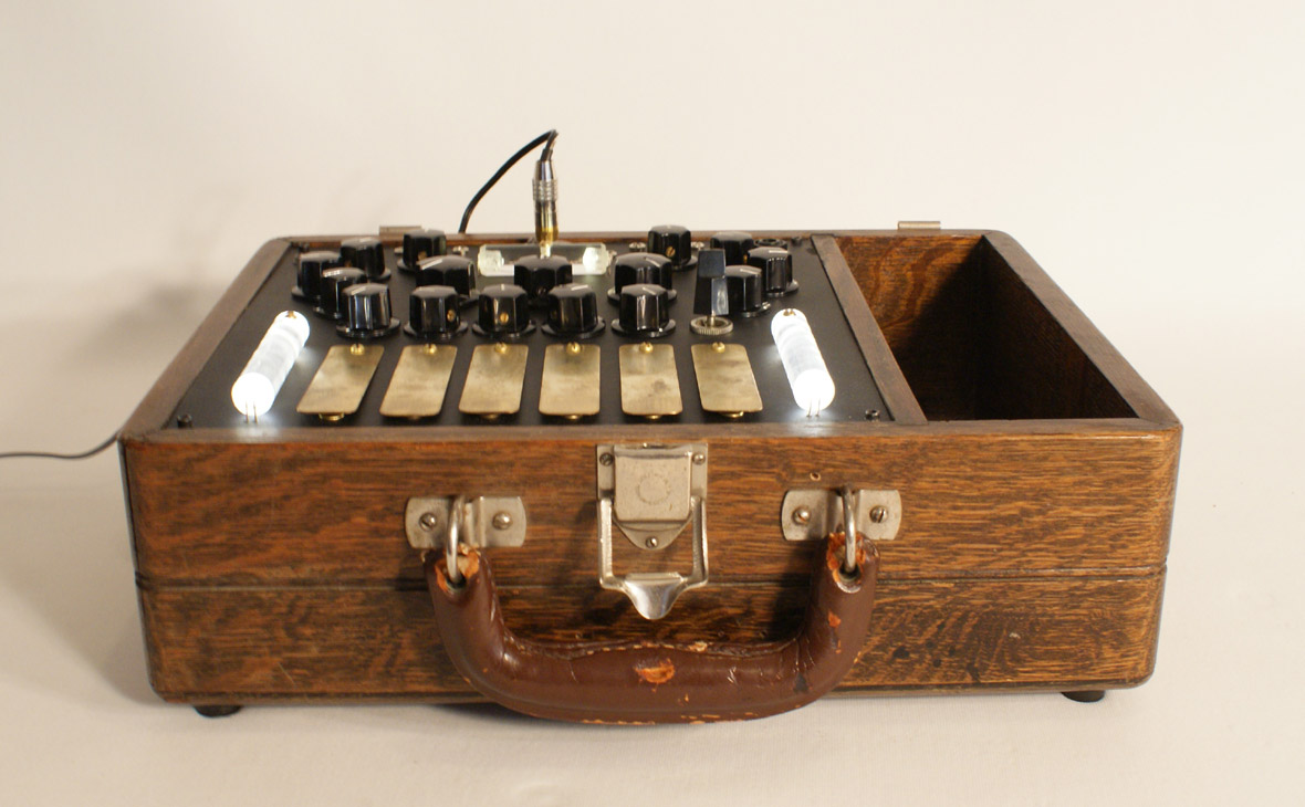 This version is expanded upon and has the ability to recieve simple on/off midi messages for proper synchronization. The jacks also allow for the midi to be connected to any other folktek work with trigger jacks. Expanded delay controls include tap tempo, notated tight and reverse delay styles. Very big drum sound and sweet synth drone.
