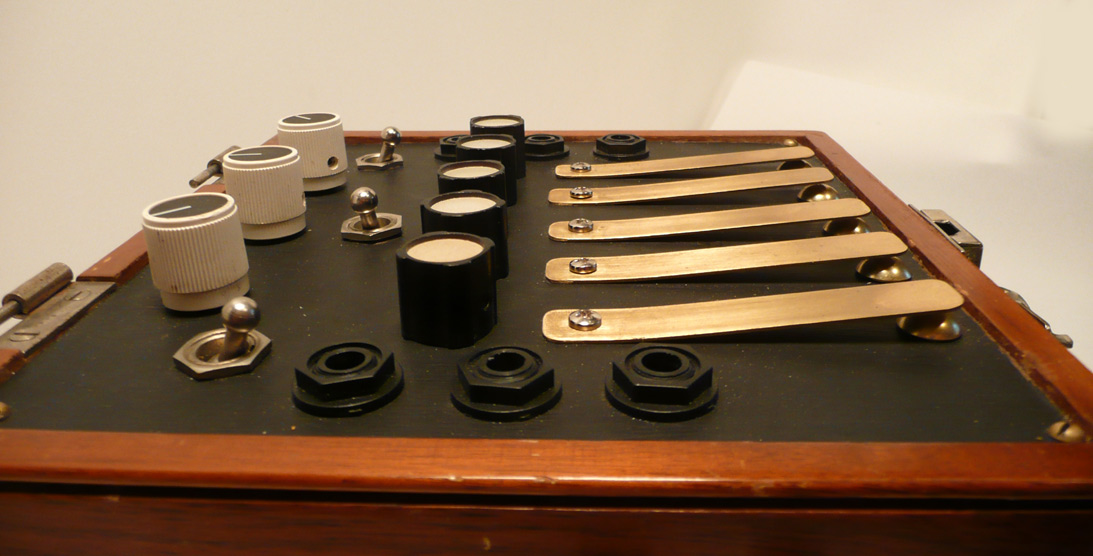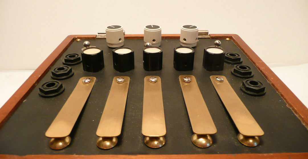 The original Drum Scape series built into an antique box. For video, sound examples, and more details about how to co-mission a drum scape, see the drum scape overview page. Currently built on co-mission only.