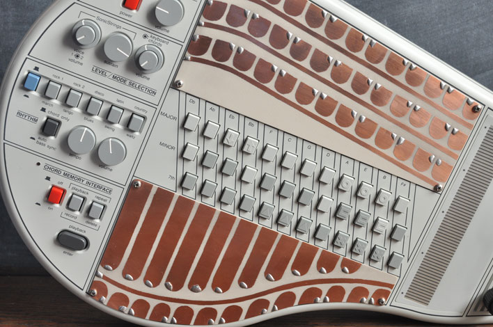 Modified omnichord system two(om-84) Touch synthisizer. This piece features 60+ touch points allowing you to produce rich and complex tones, drones, harmonies, filtering and distortion. Multiple tones/notes can be played at one time to create thick and complex tonal harmonies.