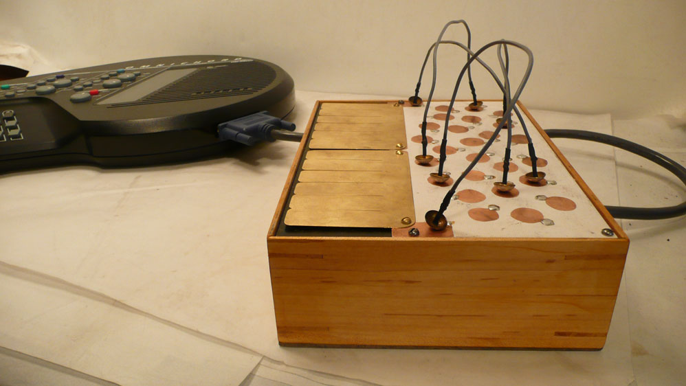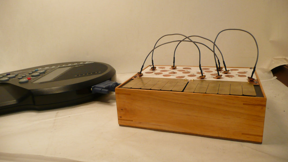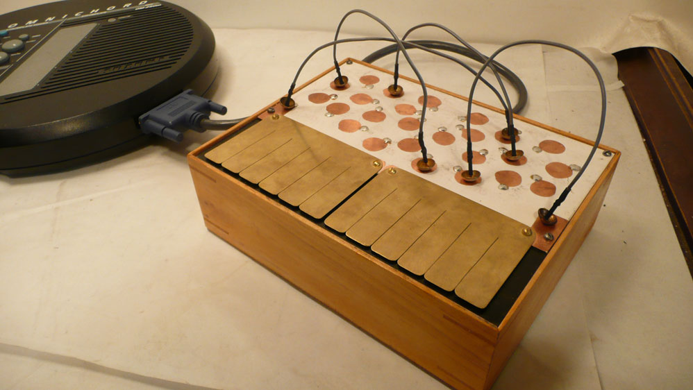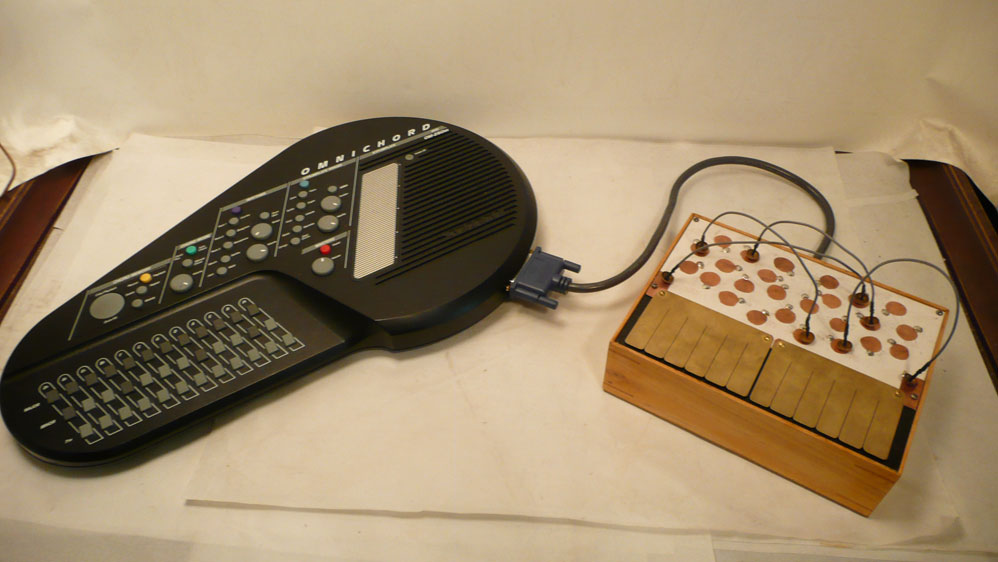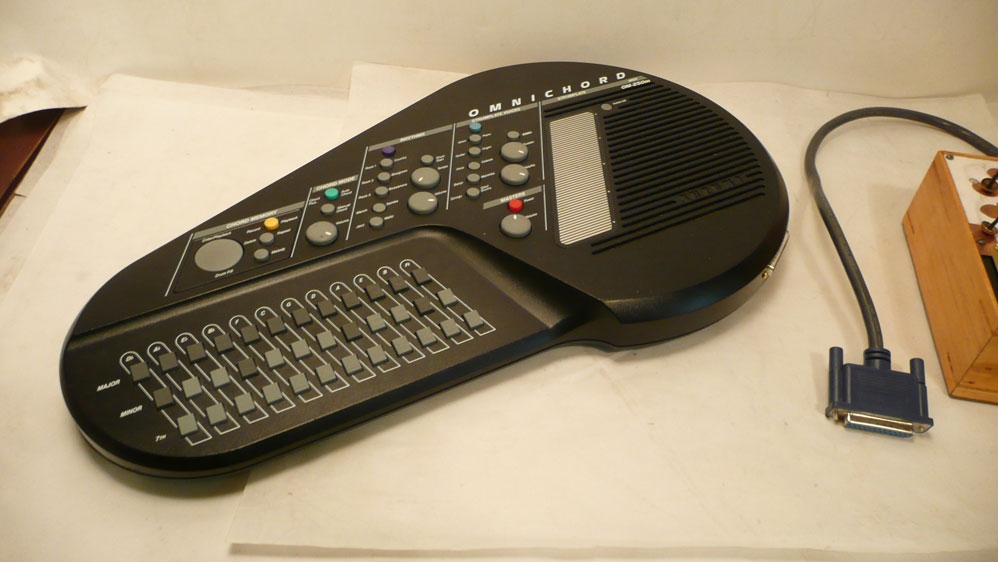 Here we have the modified omnichord model om-250 , I have created a break away box for the mods on this one . Omnichord functions normally without mod unit connected, when you connect the mod unit the beats and chords can be effected in various ways. The Mod unit features a 25 point magnetic patchbay and 12 patchable keys. Any point combination or multiple point combos create glitched out beats and various effects. The patchable keys create a pallete of effects at you finger tips. Patches effect the beats as well as the strum plate and chords. The Sound! Mp3's are encoded in medium quality and mono Sample one covers some of the basic patches being played on the patchable keys and effecting the preset chords. Sample two changes it up a bit and the keys effect playable chords and the strum plate Sample three simply effects the playable chords in a number of ways sample 1 sample 2 sample 3