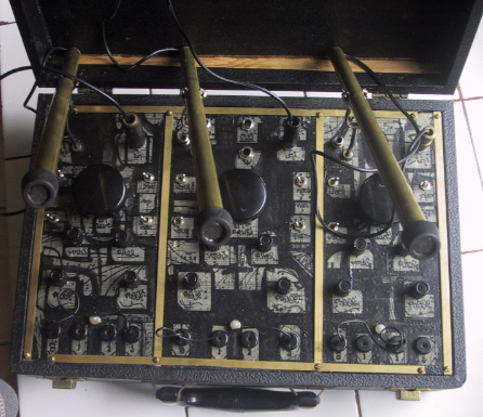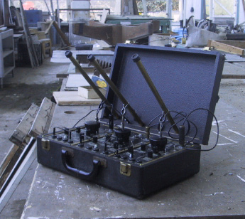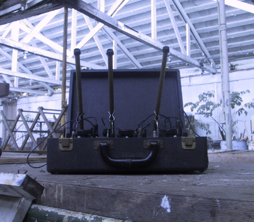 This is one of the pieces Arius Blaze made for Mike Patton. Three separate sections to control vocals - all bit shifting and ring style pitch shifting. Three custom Mics, mic stands, brass lining and a lot of craziness.