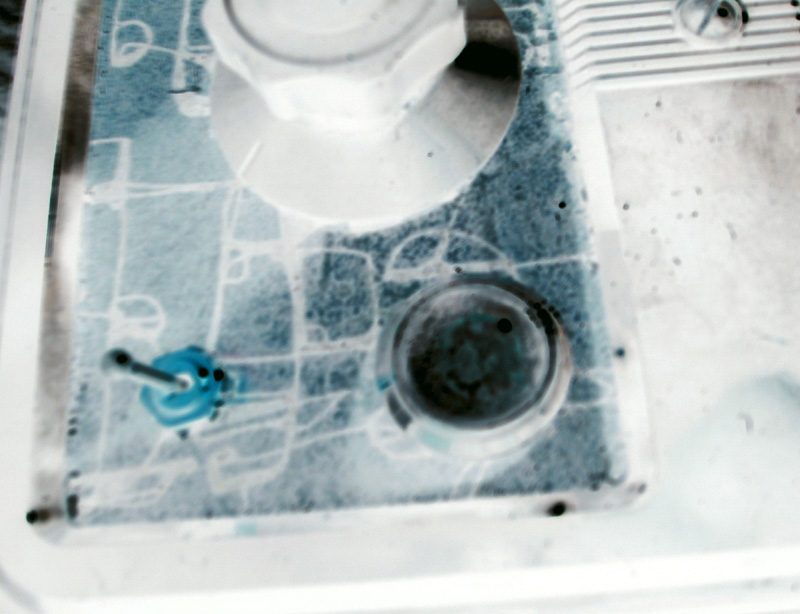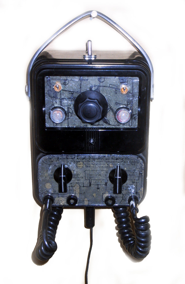 "Found Object Dub is a very strange optically controllable analog delay taken completely out of the context of what a delay is meant to be. Out of this world dub feedback and noise generation makes it capable of creating vast thick atmospheric swells and drones This unit is first and foremost an audio/visual art piece - made to hang on the wall and have the pedal hang down to the floor for activating the effect (though it can be used as table-top). The 2 probes are permanent attachments. The pedal can be unplugged, and though any trigger pedal will work, this vintage "print" pedal is meant to accompany the Found Object. Both control panels are original - the top is a pen and ink abstract version of the bottom circuit diagram...Both panels are coated in resin and dirtied up in as many ways as possible to give it a very aged appearance. All parts are vintage, unusual and high quality. The top panel will light red to indicate "on". Optic eyes can control either delay time, feedback or both. Each has a switch...The feedback is insane if you want it to be - true dub saturation - and the delay eye controls a wide range. As an effects processor it is best used as a saturation tool, but is a little noisy on the slow end and should certainly be considered an experimenter's atmospheric box. The Found Object also has main controls for time, feedback and effect level. It is activated using the pedal...There are four patch ports and 2 main probes that allow for alterations in the primary process (odd effects/noise and atmospheric feedback generation). On-off switch, 1/4" input and 1/4" output. Runs on one 9v battery. This piece is not meant to be a typical delay by any means. It is an ambient-dub feedback generator designed more for atmospherics and tonal structuring than for adding a little blip blip blip to your sounds Found Object is modular and can be connected to any synth I create with the same style plugs. I have made several modular pieces in the past but I intend to make the majority of all future creations patchable and playable with each other. This piece is signed by the artist - Arius Blaze - and includes a small manual."
