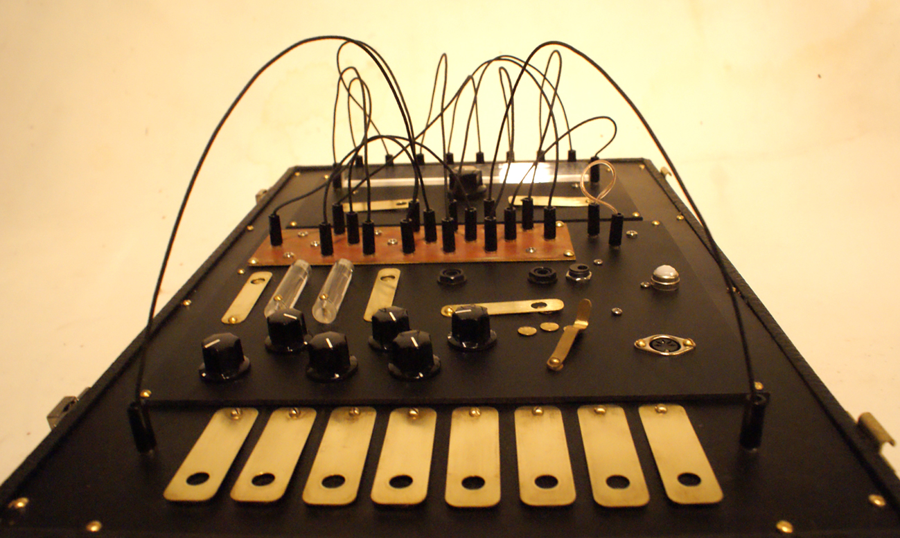 The time scape sequencer with patchable keys. Essentially the time scape; http://folktek.com/instruments/time/time-scape, the scape sequencer; http://folktek.com/instruments/time/scape-sequencer with they patchable keys of the time machine; http://folktek.com/instruments/time/time-machine-x built into a suitcase.